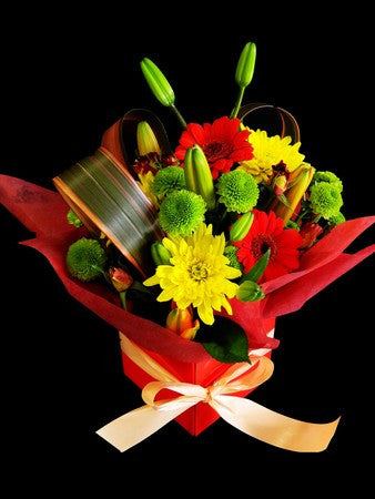A bright, bubbly arrangement of colourful blooms designed in a pretty box for instant impact.